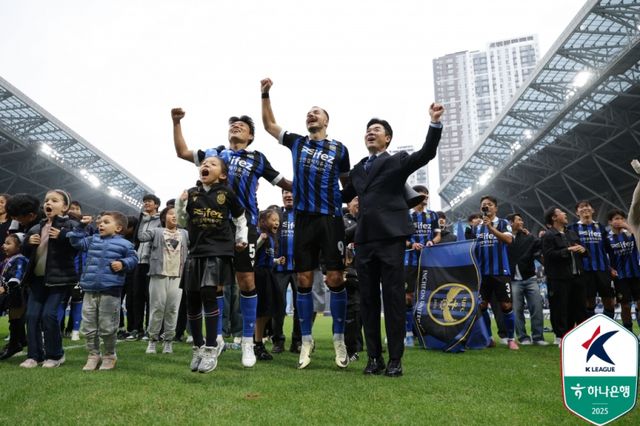 인천은 26일 인천축구전용경기장에서 열린 하나은행 K리그2 2025 36라운드서 경남FC를 3-0으로 완파했다. 인천은 이날 승리로 승점 77을 기록, 3경기를 남겨두고 2위 수원 삼성(승점 67)과 격차를 승점 10점으로 벌리며 조기 우승을 확정했다. 올 시즌 K리그2 우승 팀은 차기 시즌 K리그1(1부리그)로 자동 승격한다. 350일 전 같은 장소에서 K리그1 최하위를 기록해 창단 첫 강등의 아픔을 맛 봤던 인천은 단 1시즌만의 승격에 성공했다.