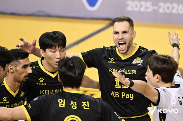 뉴시스 보도에 따르면, KB손해보험은 26일 경기 의정부 경민대 체육관에서 열린 진에어 2025~2026 V-리그 남자부 대한항공과의 경기에서 세트 스코어 3-1(25-23 25-20 22-25 26-24) 승리를 거뒀다.