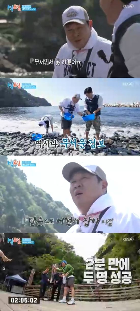 '겁보' 문세윤은 "무서워서 못하겠다. 진짜 무섭다. 이걸 손으로 어떻게 잡아"라고 안절부절못했다.