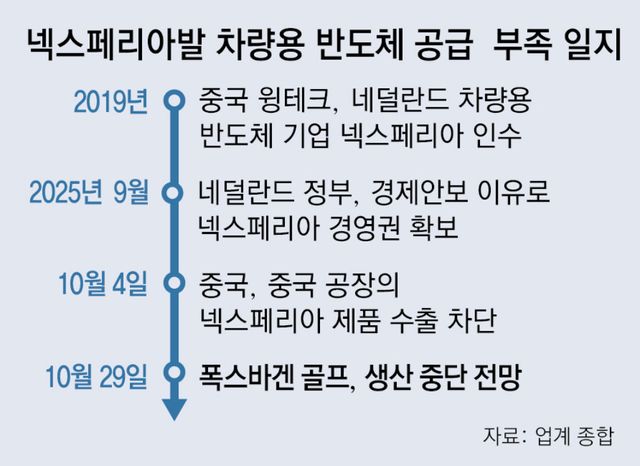 한국 역시 이번 사태의 영향을 받을 수 있다는 분석이 나온다. 현대차·기아도 넥스페리아 반도체를 공급받고 있지만, 현재 수개월 치 재고를 확보해 당장 생산 차질은 벌어지지 않을 것으로 보인다.