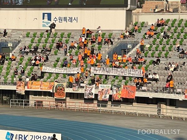 그럼에도 제주 팬들은 제주를 향한 굳건한 신뢰를 보였다. 이날 수원종합운동장을 찾은 제주 팬들은 경기 전 걸개를 내걸었다. 성적이 부진한 팀이 으레 내걸 만한 비판 걸개가 아니었다. ‘끝까지 함께 싸우자’, ‘그 누구가 뭐라 해도 우린 널 믿어!’라며 선수들을 독려했다. 자신들까지 질책하기보다 잔류 경쟁에 힘을 실어주겠다는 마음이 전해졌다.