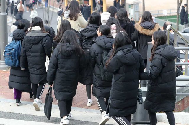 한국 겨울철 길거리에서 흔하게 볼 수 있는 롱패딩 군단. 자료사진. / 뉴스1
