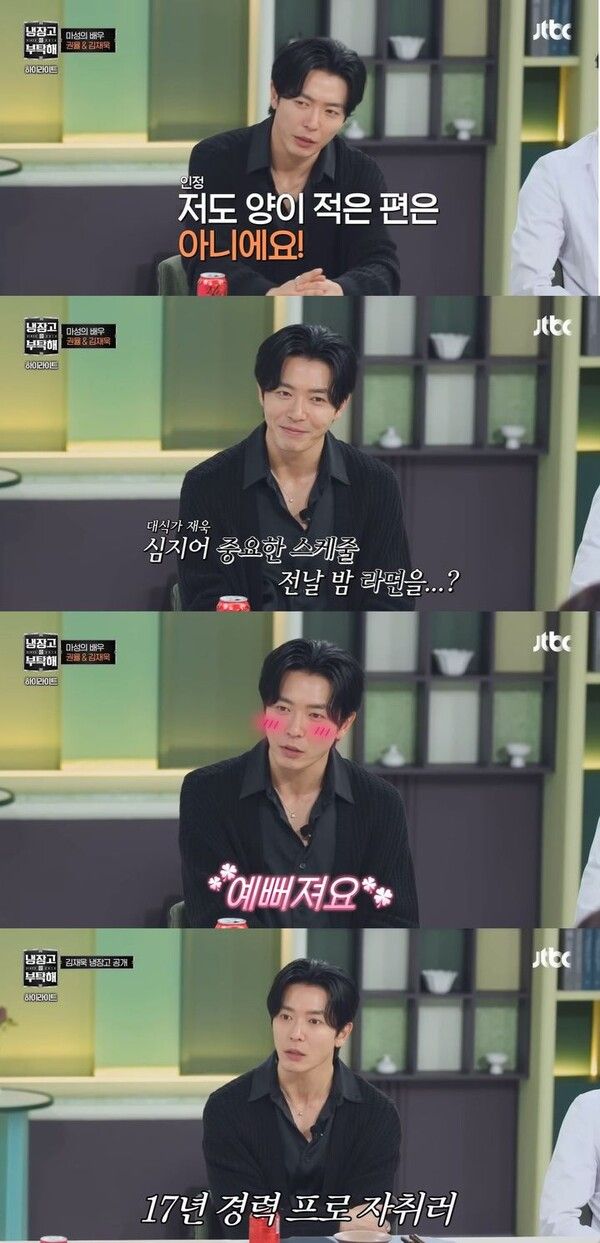 이어 김성주가 "스케줄 전날에 라면을 왜 먹냐"고 묻자 김재욱은 "얼굴이 부어야 예뻐 보인다"고 말했다.