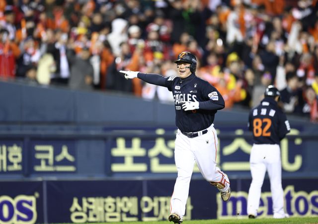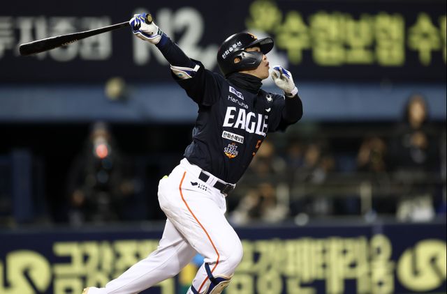 노시환은 1차전에서 안타 2개를 쳤지만, 5회 말 주자 3루 상황에서 오스틴 딘의 땅볼 타구를 잡은 뒤 홈에 악송구를 범하며 실점 빌미를 제공한 바 있다. 2차전 첫 타석에서 이를 만회하는 아치를 그렸다. KS 연속 타자 홈런은 역대 11번째다.