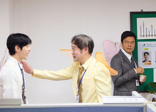 공개된 사진 속 박진영은 삭막한 오피스에서 파티션에 기대어 조는 모습, 믹스커피를 타면서 칭찬받는 동료를 경계하고 흘겨보는 등 리얼한 연기와 표정으로 고군분투하는 직장인의 애환을 유머러스하게 풀어냈다. 특히 박진영의 상사로 변신한 권진아가 요술봉을 들고 훈계하는 듯한 장면과 두 사람 어깻죽지에 달린 핑크빛 요정 날개가 이번 신곡 콘셉트를 향한 궁금증을 높인다.