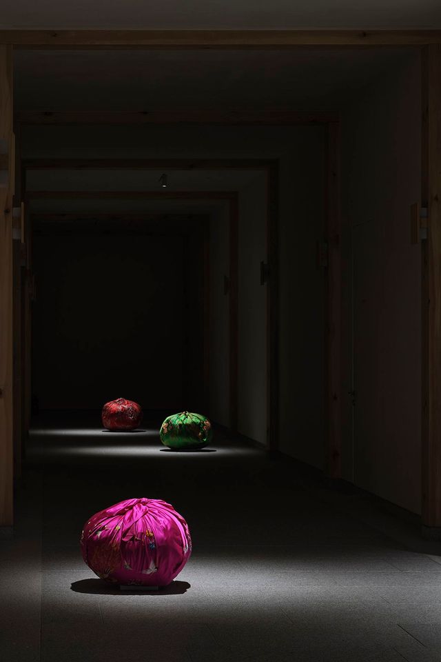 이번 전시와 같은 시기 암스테르담 구 교회(Oude Kerk)에서 개인전 «To Breathe-Mokum»이 열렸죠. 두 전시 속 〈보따리〉 작업은 분명 다른 맥락으로 와닿습니다. 감상적으로 이번 전시를 바라본다면, 자연광이 들지 않는 통로 사이 놓인 세 개의 보따리가 작가의 여정 같다는 인상을 받았어요. 각각의 보따리에 담긴 의도는 무엇인가요? 암스테르담에서 선보이고 있는 «To Breathe-Mokum»은 암스테르담의 가장 오래된 건축물인 구 교회에서 올해 암스테르담 도시 건립 750주년을 기념하는 장소 특정적 프로젝트입니다. ‘모큄(Mokum)’은 과거 유대인 공동체가 암스테르담에 머물며 ‘안전한 장소’, 또는 ‘우리의 집’을 뜻하는 말로 사용했고, 도시의 애칭으로도 쓰이죠. 도시의 다문화적 특성을 나타내기 위해 무수한 이민자로부터 기증받은 이불보와 헌 옷가지로 만든 보따리 설치물을 배치한 작업입니다. «To Breathe-Sunhyewon»은 하나의 건축적 보따리 안에 보따리를 배치한 전시입니다. 〈연역적 오브제‐보따리〉와 공(void)을 흙으로 싸맨 〈흙에 바느질하기: 보이지 않는 바늘, 보이지 않는 실〉을 또 다른 보따리로 보여주고, 이 모든 작업의 개념적 근간이 된 원형으로 한국적 보따리 세 점을 한옥이라는 특정 장소에 병치한 것이죠.