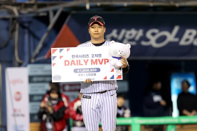 박동원은 이날 3타수 2안타(1홈런) 4타점 활약에도 문보경에게 2차전 '데일리 MVP'를 뺏겼다. 박동원은 "오늘 MVP 기념 촬영을 하는가 싶었는데 얘는 못 이기겠더라. 8할 넘게 치겠더라. 정말 잘 친다"라고 혀를 내둘렀다. 문보경의 KS 타율은 0.667(9타수 6안타 7타점)다.