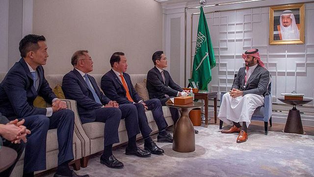 지난 2022년 빈 살만 사우디아라비아 왕세자 방한 시 기업 총수 면담에서 정의선 회장(왼쪽에서 두 번째)과 빈 살만 왕세자(오른쪽). / 사우디아라비아 국영매체 SPA