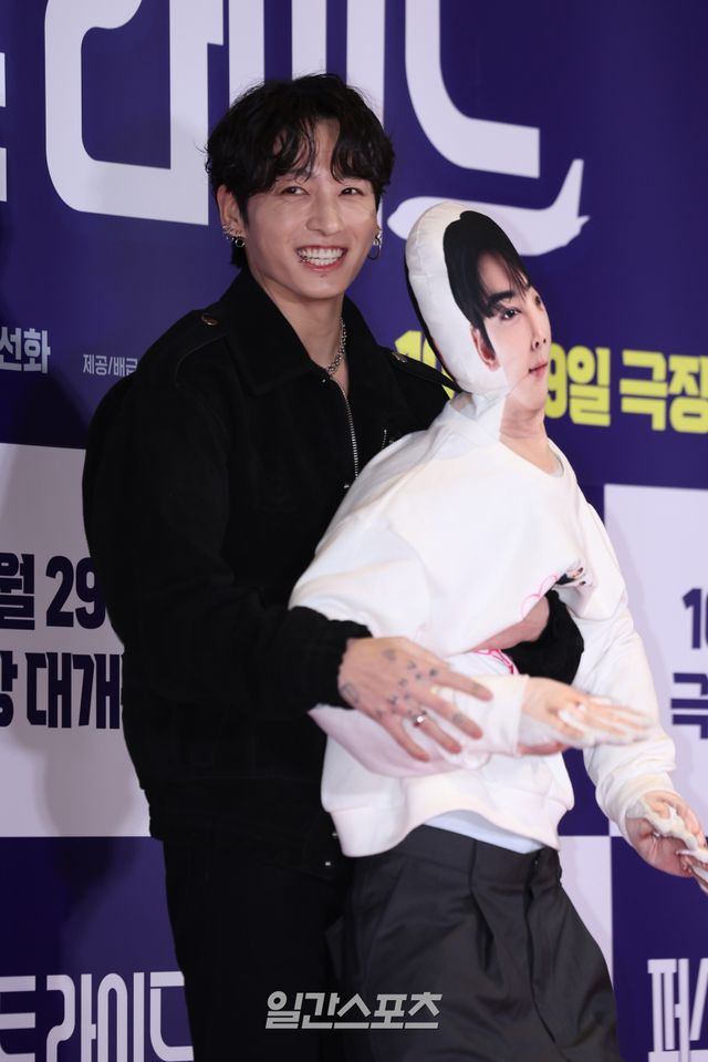 정국은 지난 27일 오후 서울 송파구 롯데시네마 월드타워에서 진행된 영화 ‘퍼스트 라이드’ VIP 시사회에 참여했다. 그는 영화 속 등장하는 차은우 인형과 등장, 함께 포즈를 취하는가 하면, 인형을 번쩍 안아 올려 퇴장하는 등 재치 넘치는 퍼포먼스로 뜨거운 호응을 얻었다.