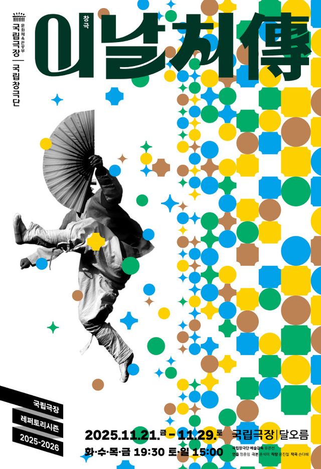 한편 국립창극단은 ‘2025 찾아가는 국립극장’ 사업의 일환으로, 서울 공연에 앞서 △거제문화예술회관 대극장(11월 6일) △평택남부문화예술회관(11월 13~14일)에서 ‘이날치傳’을 공연한다.