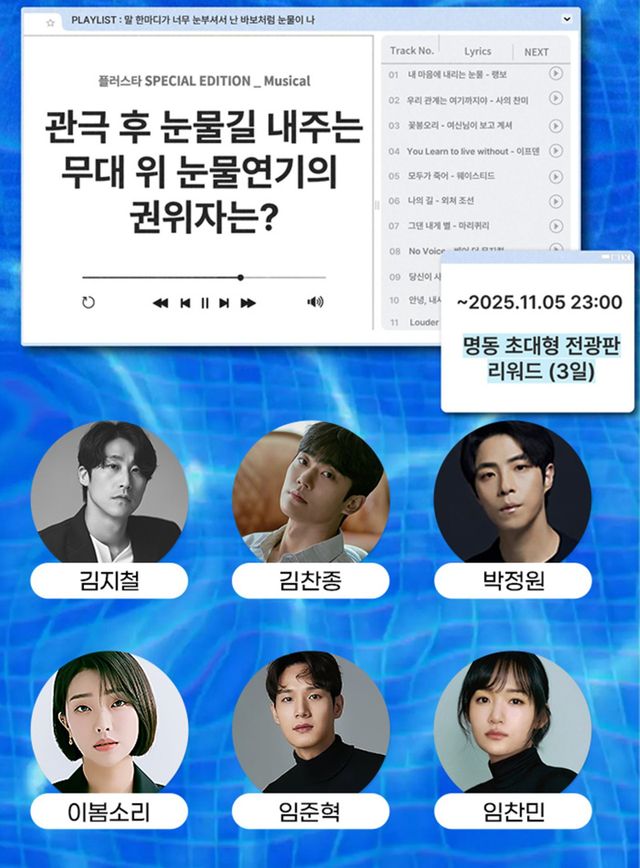 ‘내 스타 응원의 모든 것’ 스타 투표 웹서비스 플러스타(plustar) 측은 “관극 후 눈물닦기, 얼굴에 난 눈물길 지우기 바쁜 관객들. 관극 후 관객들 눈에 눈물 펑펑 쏟게 하는 무대 위 눈물연기의 권위자는 누구인가요?”를 주제로 투표 페이지를 오픈했다.