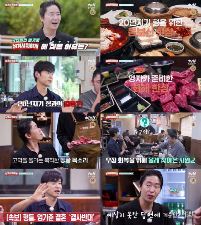 29일 방송되는 tvN STORY ‘남겨서 뭐하게’에서는 ‘국민 악역’ 엄기준이 ‘맛선 프로젝트’를 찾아, 절친 유준상에게 몸보신 한상을 대접한다. 여기에 깜짝 등장한 몰래 온 손님까지 가세해 즐거운 토크와 먹방을 펼칠 예정이다.