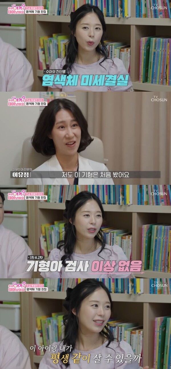 산부인과 전문의 이유정은 "염색체 미세결실이란 기형은 몰랐다가 벼락을 맞는 일"이라며 "7만분의1 확률로 드문 기형이다. 저도 이번에 처음 봤다"고 말했다.