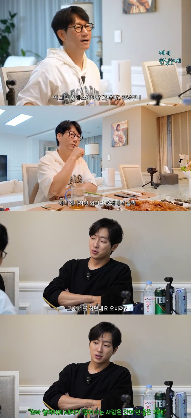 "만났는데 둘 다 그것에 대한 언급은 없더라"라는 이상엽의 말에 지석진은 "왜냐하면 그게 아내 입장에서는 살짝 기분 안 좋을 수도 있지 않나"라고 이야기했다.