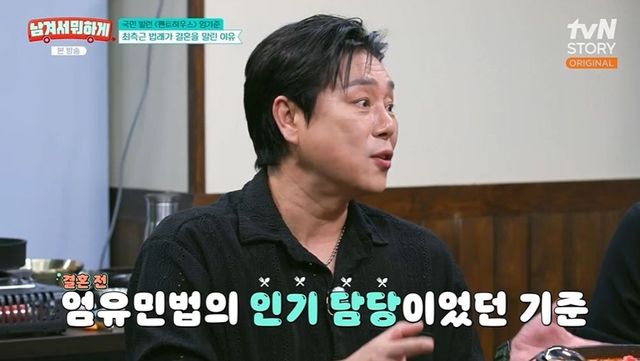 이영자는 “엄유민법(엄기준, 유민상, 민영기, 김법래) 중에 엄기준 씨만 결혼을 안 하지 않았냐. 이제 장가보내니까 마음이 후련하냐”라고 질문했다. 그러나 김법래는 “사실 가지 말라고 했다. 기준이가 총각이라 인기가 제일 많았다. 워낙 활동도 많이 하고, 잘생겼으니까 선물, 도시락을 보내줘서 저희도 덕을 많이 봤다. 근데 그게 많이 줄어들었다”라고 이유를 밝혔다.