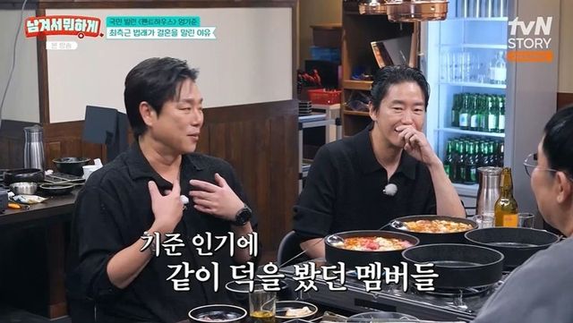 엄기준은 “걸음 수를 재는 시계가 있었다. 네 명이서 누가 많이 걷나 내기했다. 일 끝나면 집까지 차를 타고 가야 하지 않냐. 형은 걸음 수 이기려고 차 타고 가다 내렸다”라며 지독한 경쟁을 한 일화를 꺼냈다. 유준상은 “김법래, 민영기는 자전거에 그걸 달아놨다”라고 했고, 엄기준은 “그러다 (형이) 대상포진이 왔다. 너무 무리해서”라고 말해 웃음을 안겼다.