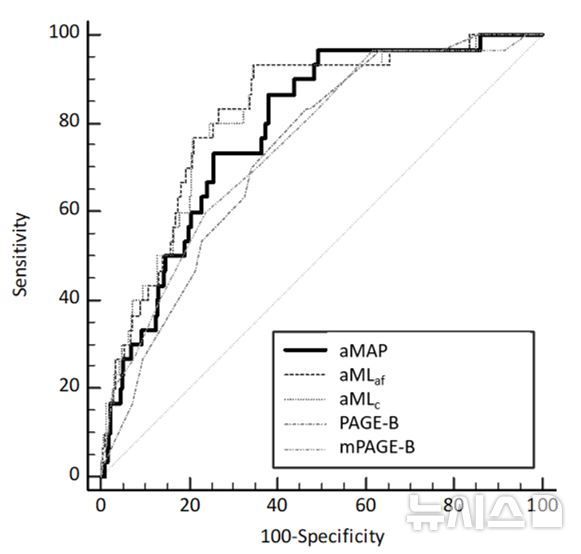분석 결과 aMLaf와 aMLc 예측 모델 모두 기존 PAGE-B, mPAGE-B 모델과 비교해 우수한 예측 성능을 보였다. B형간염 환자의 5년 후 간암 발생 예측 정확도를 나타내는 AUROC 값은 두 모델 모두 0.82(82%)로 기존 모델(PAEG-B(0.74), mPAGE-B(0.75))을 통계적으로 유의하게 앞섰다. 특히, aMLaf 저위험군에서는 추적기간 동안 간암 발생이 단 한 건도 없었다.