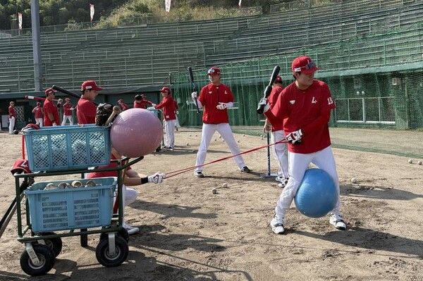 약 2시간30분 동안 야외와 실내 두 개 조로 나눠 배팅 훈련을 진행하고, 이후 1시간30분 간 실내에서 추가 타격 훈련을 소화한다.