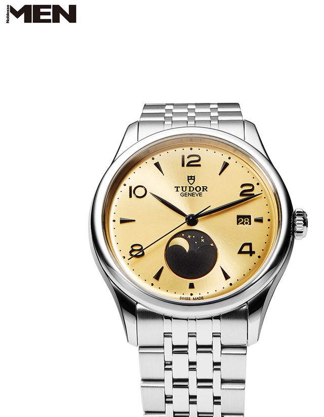 고대부터 달과 별은 시간과 계절을 읽는 나침반 역할을 했다. 이를 기계식 시계로 구현한 문페이즈는 초정밀 시계의 기술력을 방증한다. 크로노그래프와 GMT 같은 실용적 기능에 집중해온 튜더가 마침내 달을 품은 이유다. 1926 루나는 39mm 케이스와 짝수 아라빅 아플리케 인덱스로 1926 컬렉션의 전통을 살렸지만, 와플 대신 선레이 다이얼로 새로움을 더했다. 팬텀 문라이트 골드 디스크는 6시 방향의 둥근 창 안에서 달이 차고 기우는 과정을 보여준다. 다이얼 컬러인 샴페인 골드는 배우 주걸륜과 튜더 디자이너가 함께 구상한 결과물이다.