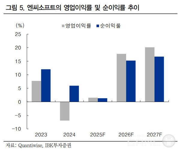 엔씨소프트의 '아이온2'는 11월 19일 출시를 앞두고 있다. IBK투자증권은 아이온2를 포함한 신작 라인업 효과로 2026년 매출액이 2조 1,230억원으로 증가하고, 영업이익은 3,760억원을 기록할 것으로 예상했다. 2025년 영업이익 전망치 240억원과 비교하면 15배 이상 증가하는 수치다.