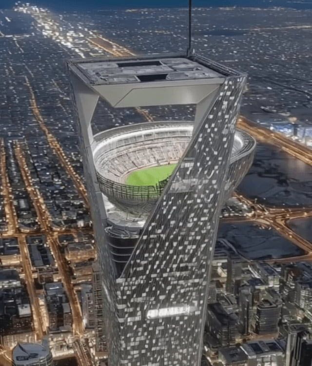 ‘네옴 스카이 스타디움’은 사우디가 2034년 월드컵을 대비해 추진 중인 초대형 프로젝트의 일환으로, 지상 1000피트(약 305m) 높이에 조성할 예정인 축구장이다. 이는 서울 여의도의 63빌딩(249m)보다 100m나 높다. 4만 6000석 규모의 거대한 축구장을 예고한 상태다.