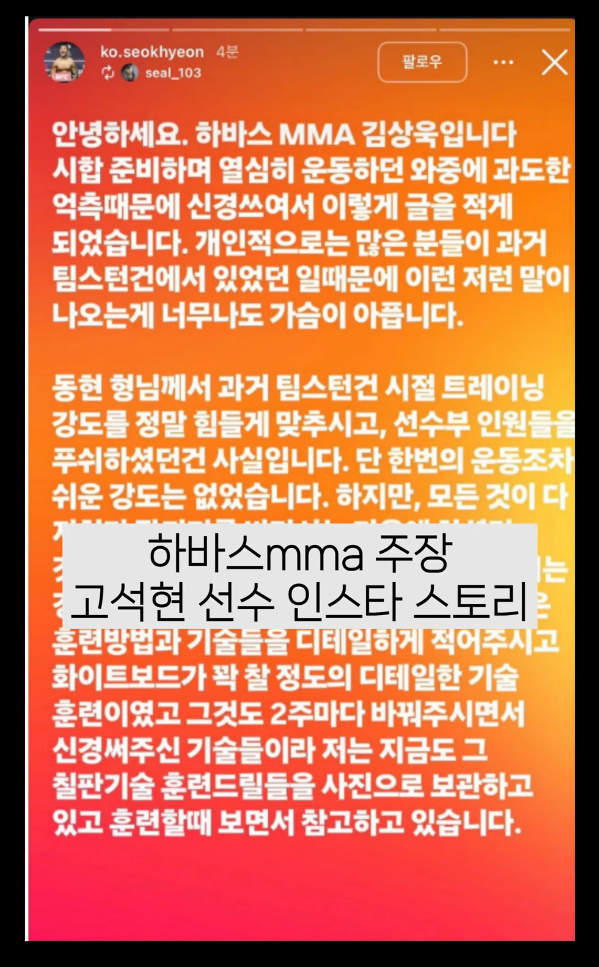 안녕하세요. 하바스 MMA 김상욱입니다.
