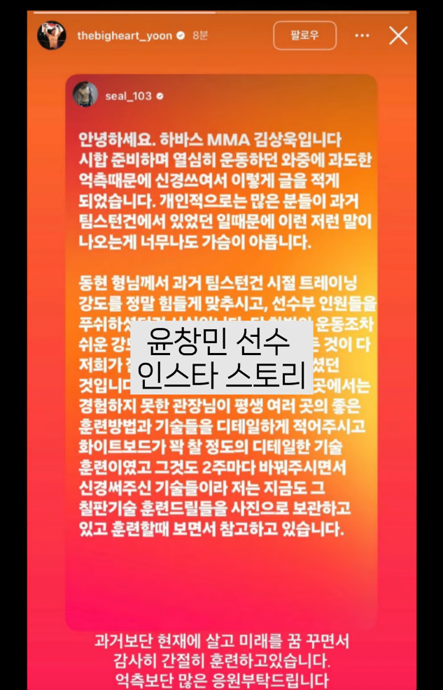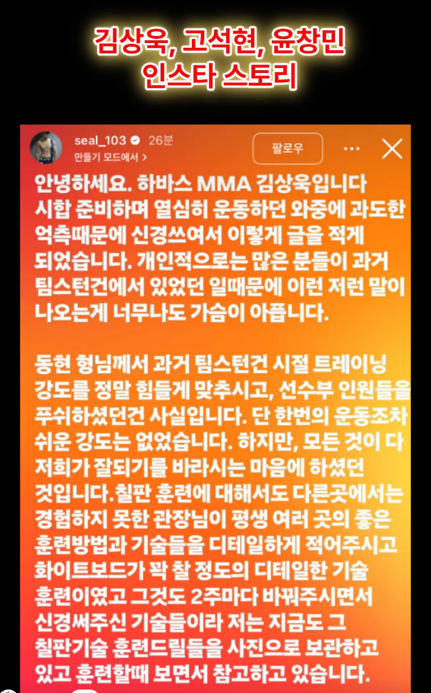 시합 준비하며 열심히 운동하던 와중에 과도한 억측 때문에 신경쓰여서 이렇게 글을 적게 되었습니다. 개인적으로는 많은 분들이 과거 팀스턴건에서 있었던 일 때문에 이런 저런 말이 나오는 게 너무나도 가슴이 아픕니다.