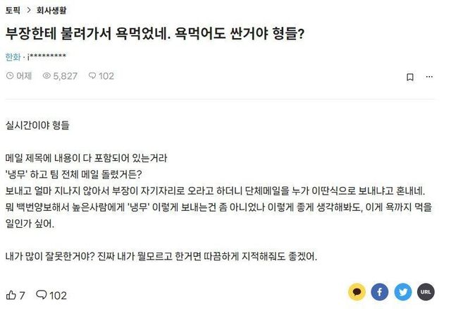 부장한테 욕 먹은 걸 이해 못하는 사람