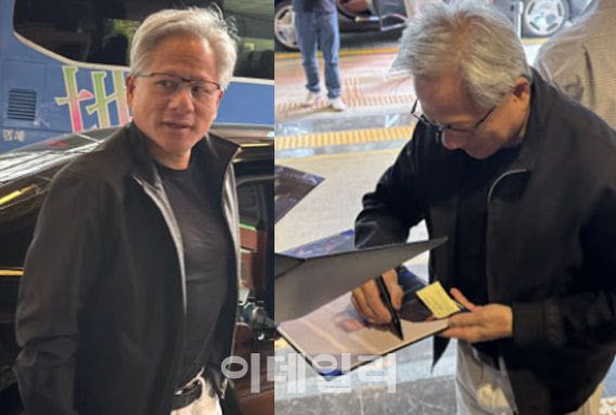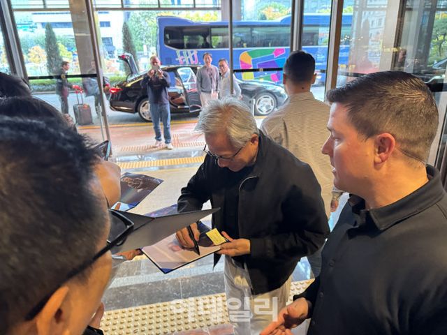 젠슨 황 엔비디아 CEO는 30일 오후 4시 30분께 서울 강남구 그랜드인터컨티넨탈 서울 파르나스에 도착해 한국 팬들이 사인을 요청하자 인사를 나누며 사인을 해주고 함께 ‘셀카’를 찍는 등 ‘팬서비스’를 했다.