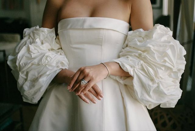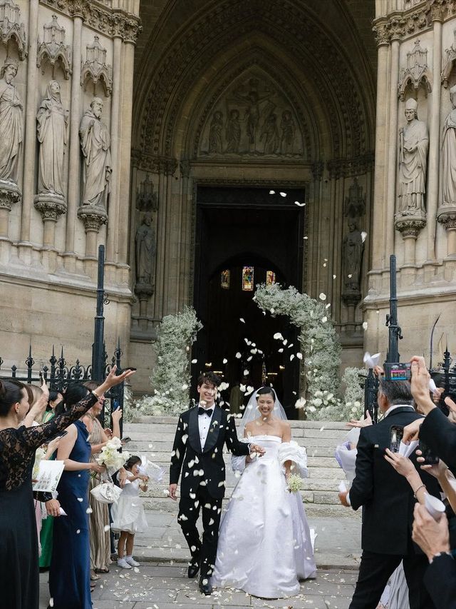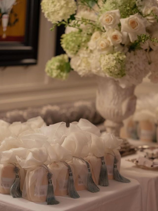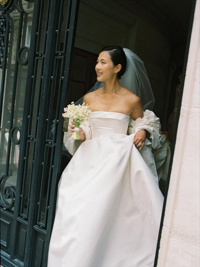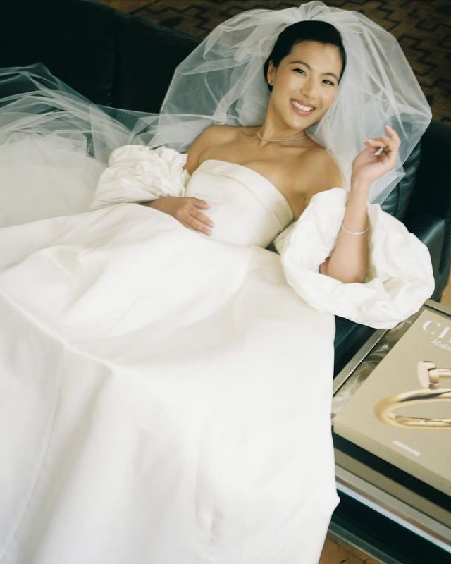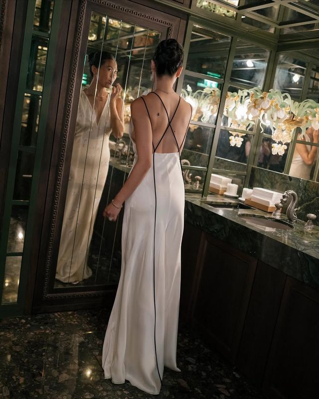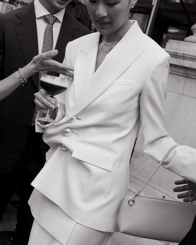 결혼식을 앞두고 진행한 리허설 복장은 특히 한국 팬들의 관심을 끌었다. 정다혜가 올린 여러 장의 사진 속에서 한국인 디자이너 김해김의 진주 블레이저가 눈에 들어왔기 때문. 실키한 소재의 이브닝 드레스 위에 쿨하면서도 여성스러운 김해김의 블레이저를 매치한 그녀는 심플한 디자인의 질 샌더 백을 매치해 우아하고 정제된 룩을 완성했다.