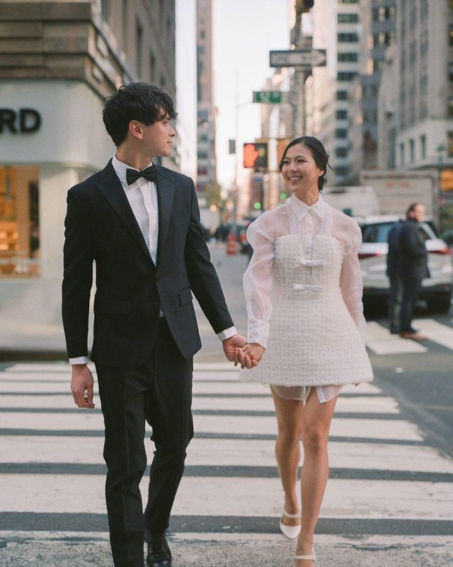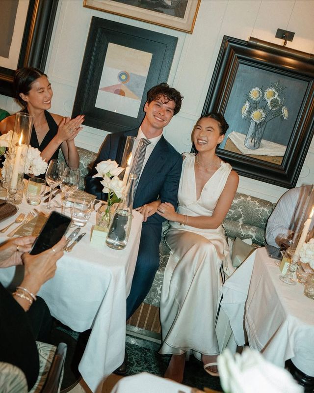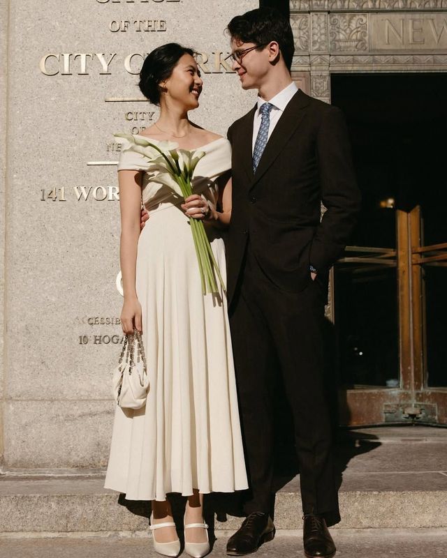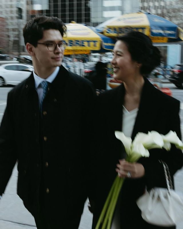 2018년 캐나다 몬트리올의 맥길 대학교 신입생 오리엔테이션에서 자원봉사 중이던 그녀를 처음 본 션이 첫눈에 반한 뒤 인연이 시작되었다는 두 사람은 사실 지난해 뉴욕에서 혼인신고를 마친 상태. 당시 심플한 크로스 드레이프 드레스를 입고 백합을 든 그녀와 션의 다정한 모습 역시 정다혜의 인스타그램을 통해 공개되었다.