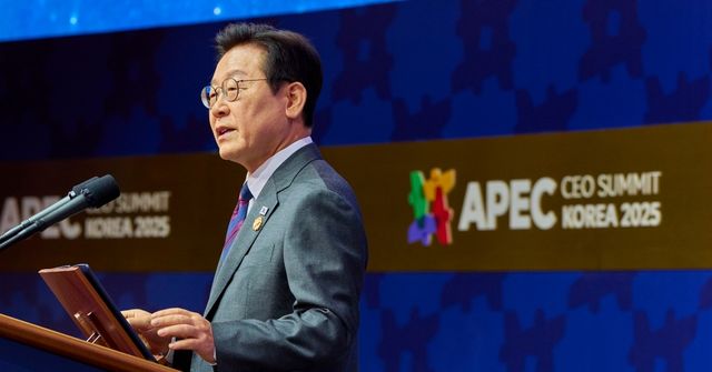 이재명 대통령이 지난 29일 경북 경주 예술의전당에서 열린 아시아태평양경제협력체(APEC) 정상회의 최고경영자(CEO) 서밋 개회식에서 특별연설을 하고 있다. / 대통령실 제공. 뉴스1