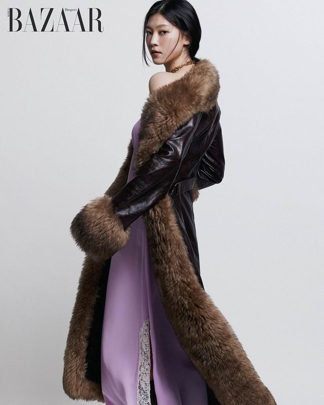 우아한 무톤 코트와 아찔한 슬립 드레스의 매혹적인 만남.