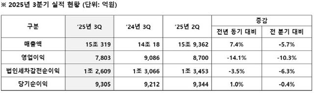 이 같은 매출 증가에도 불구하고 관세 영향을 직접적으로 받은 3분기 영업이익은 전년 대비 감소세로 돌아섰다. 관세 부담이 가중되면서 주요 사업분야인 모듈 및 핵심부품 제조부문이 적자 전환(370억원)한 것이 큰 영향을 미쳤다.