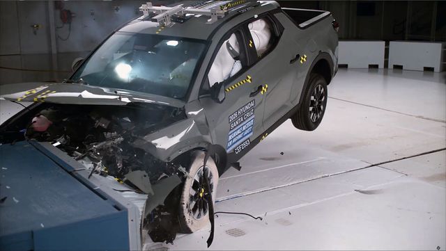 현대 싼타크루즈의 IISH 전면 충돌 평가 실험 모습. / IIHS 유튜브 갈무리