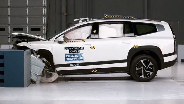 현대 아이오닉 9의 IIHS 전면 충돌 평가 실험 장면. / IIHS 유튜브 갈무리