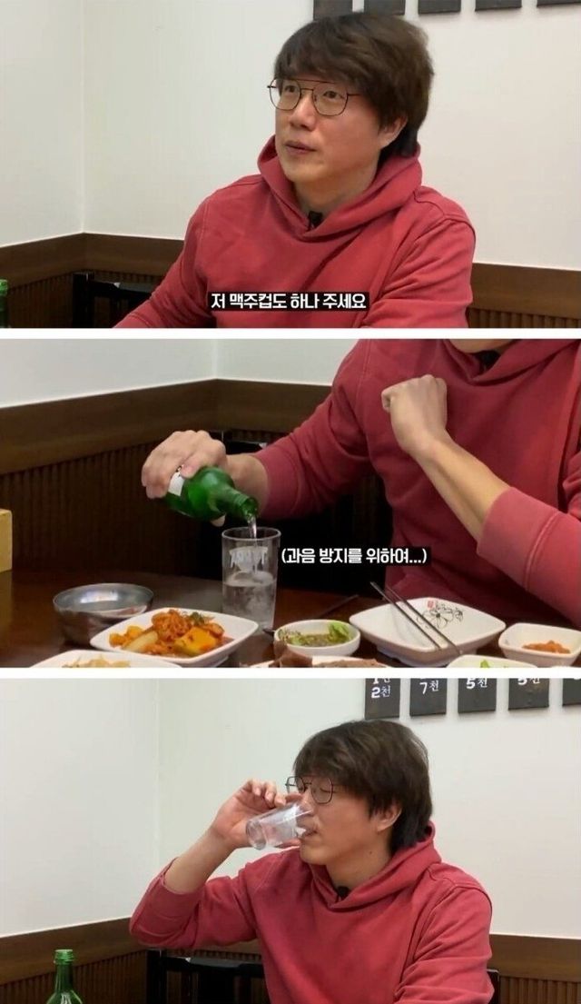 글라스로 소주 마시는 애주가