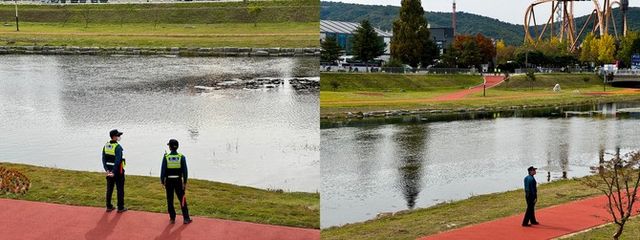 보문호수를 따라 이어진 도로에는 드론 탐지기와 폭발물 탐지견, 차단벽 차량이 줄지어 배치됐다. 그 옆으로 소방차와 구급차, 순찰차가 늘어서 있었고, 그 사이로 셔틀버스와 취재 지원 버스가 질서정연하게 움직였다.