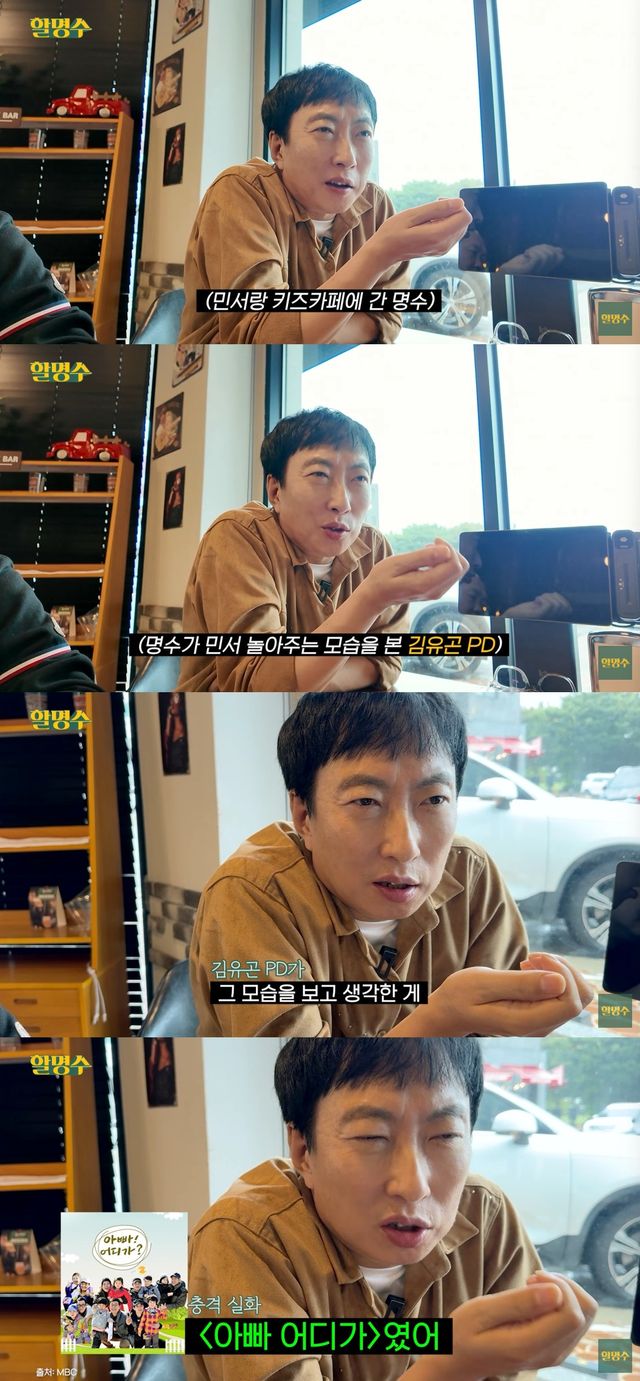 그는 "내가 민서 데리고 놀아주는 걸 김유곤 PD가 자기 아들 데리고 왔다가 보고 만든 게 '아빠 어디가'였다"고 밝혀 모두를 놀라게 했다.