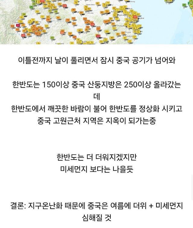 지구온난화 때문에 미세먼지가 더 심해지고 있다는 중국