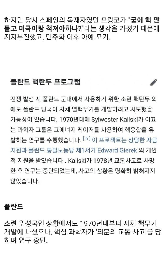 본문에 나오지 않지만 노르웨이도 핵무기 개발을 시도한 일이 있다고 합니다.