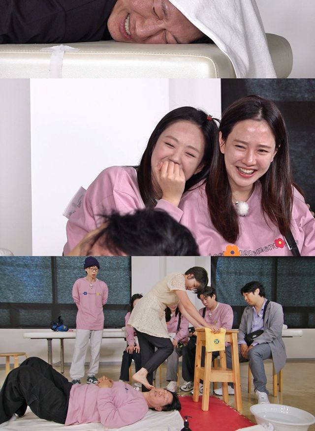 한편, 마지막 키워드는 '3년간 50대'로 동안을 꿈꾸는 지석진을 위한 특별한 테라피가 준비됐다. 그러나 테라피의 정체를 확인한 지석진은 "날 발로 짓밟고 구우려고…?"라며 기겁했다. 하지만 머뭇거림도 잠시, 10살은 젊어진다는 사탕발림에 넘어간 그는 냉큼 테라피 선두 주자로 나서 좌중을 폭소로 물들였다. 실제로 테라피를 받은 지석진은 눈에 띄게 반쪽 얼굴만 리프팅 돼 '아수라 백작'같은 모습을 보여 모두의 웃음벨이 되었다.