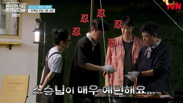 자신감을 드러내던 김희원은 첫 단계부터 난관에 부딪혔다. 밥을 뭉치는 과정에서 김희원이 초밥알을 주먹밥처럼 움켜쥐자 성동일은 “너무 세게 하면 안 된다. 밥알에 공기가 들어있어야 한다. 이건 주먹밥”이라며 지적했다.