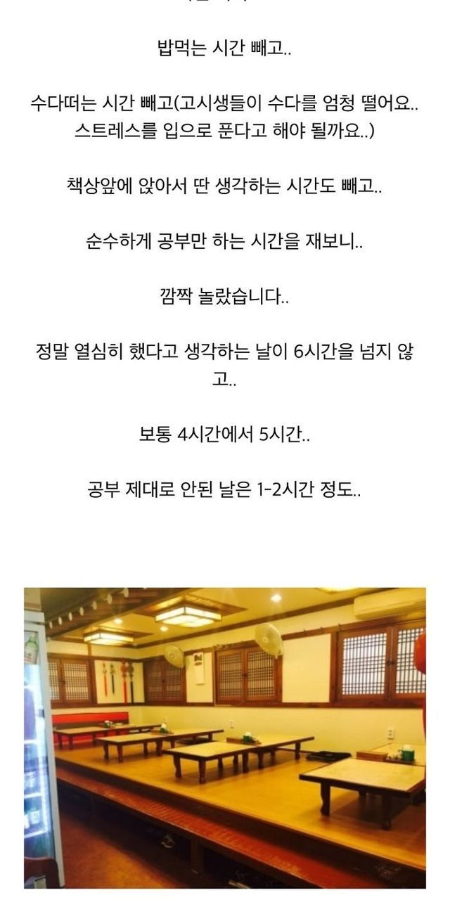 15시간 앉아있어도 실제 공부시간은 보통 4~5시간 정도라고
