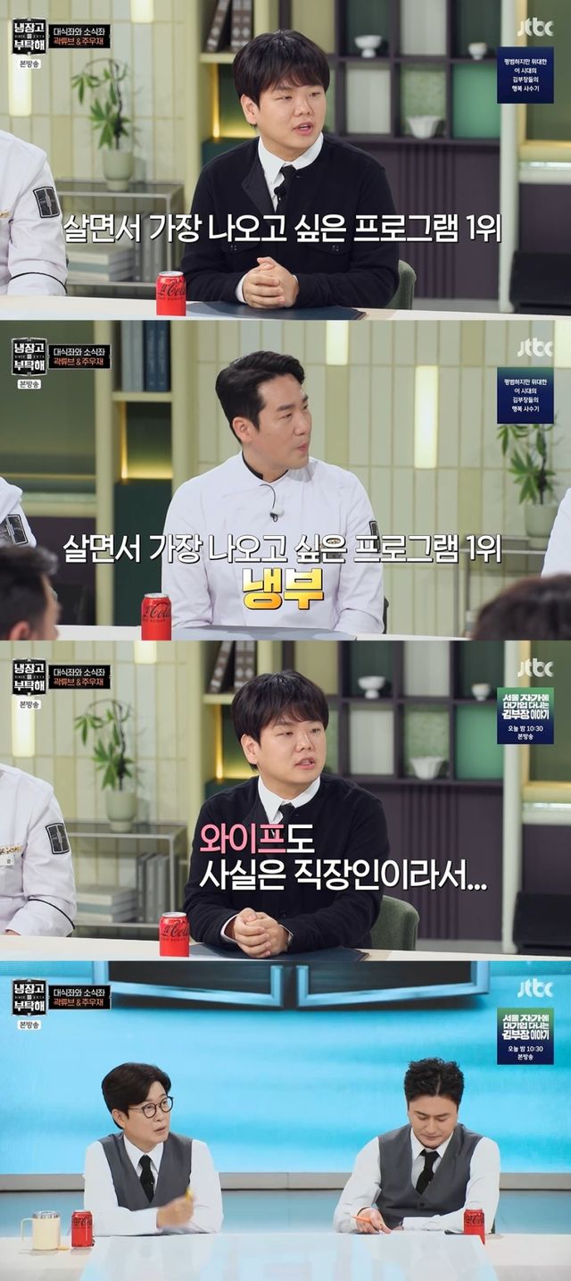 이에 김풍은 “처음 만났을 때도 ‘냉부해’가 인생의 활력소라고 하더라”고 증언했다. 곽튜브는 “제가 크리에이터 하기 전에 아제르바이잔 대사관에서 근무했다. 그곳에는 한국인이 50명 정도라 한식당이 없었다. 요리를 직접 해야 해서 매주 ‘냉부해’를 챙겨봤다. 직장 생활의 낙이었다”고 덧붙였다.