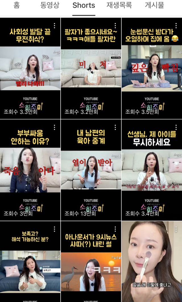 ‘우찬이 썰’만 재미있게 푸는 건 아니다. 시터 할머니의 잔소리 편, 눈치 없는 남편의 “넌 출산 천재야” 편, 썸인지 연애인지 구별법까지 육아를 넘어 생활 전반을 콘텐츠로 소화한다. 별다른 장치도 없다. 타고난 입담과 안정된 발성이 자연스럽게 시선을 붙잡는다. 이 말맛에는 이유가 있다. 윤소희는 2016년부터 2019년까지 KBS강원에서 아나운서로 활동했고, 현재는 프리랜서 쇼호스트로 활동 중이다. 현직 아나운서 시절 영상을 보면, 지금보다 한결 차분한 톤이었다는 걸 알 수 있다.