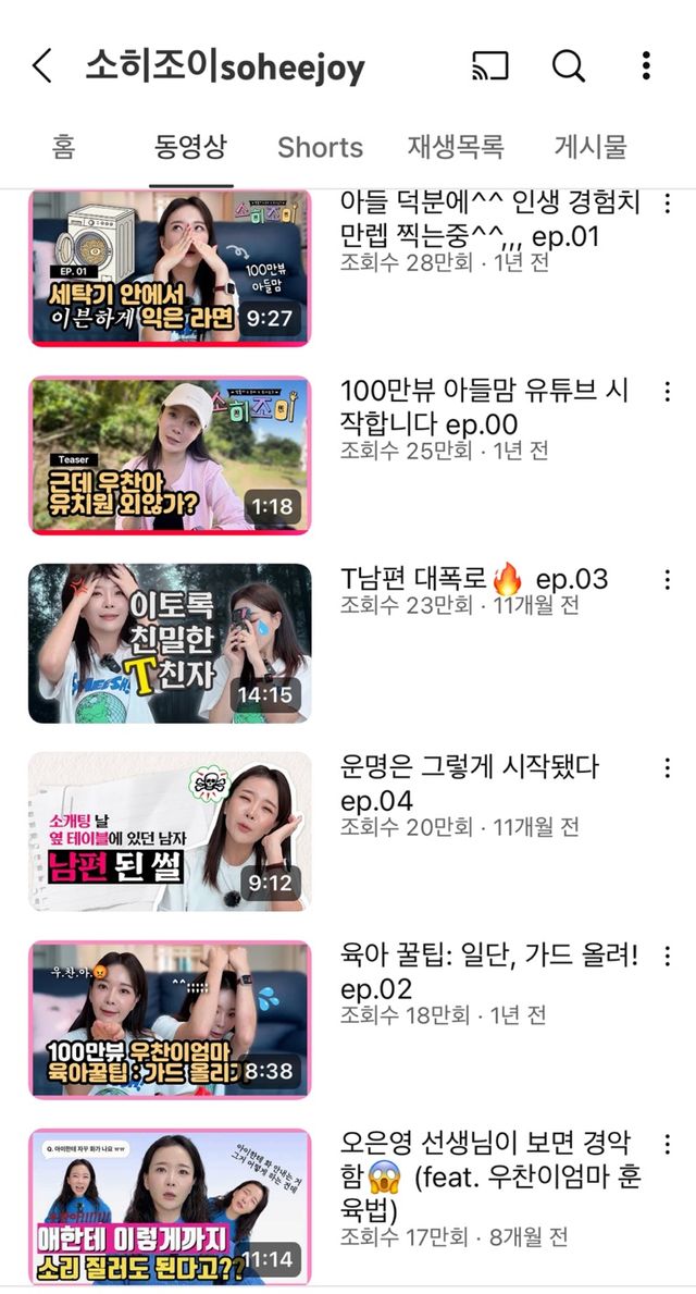 유튜브계 ‘오은영 박사’의 탄생이다. 다만, 조금 맵다. 구독자 8만명을 보유한 ‘소히조이’는 대형 유튜버는 아니지만, 최근 ‘아들맘’들 사이에서 꼭 봐야 할 채널로 급부상하며, 채널 규모에 비해 높은 조회수와 화제성을 자랑하고 있다.