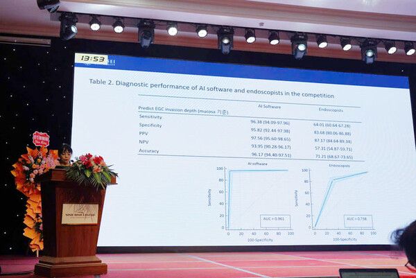 이번 연구는 조기위암 환자의 임상 데이터를 기반으로, 인공지능 소프트웨어와 내시경 전문의 간의 침윤깊이 진단 정확도를 비교한 임상시험이다. 그 결과, AI는 민감도 96%, 특이도 95%, 전체 정확도 96%로, 내시경 전문의(정확도 71%) 대비 현저히 높은 진단 성능을 보였다. 특히 병변의 크기나 형태에 관계없이 일관된 판독 정확도를 유지해, AI의 객관적이고 안정적인 진단 가능성을 입증했다.