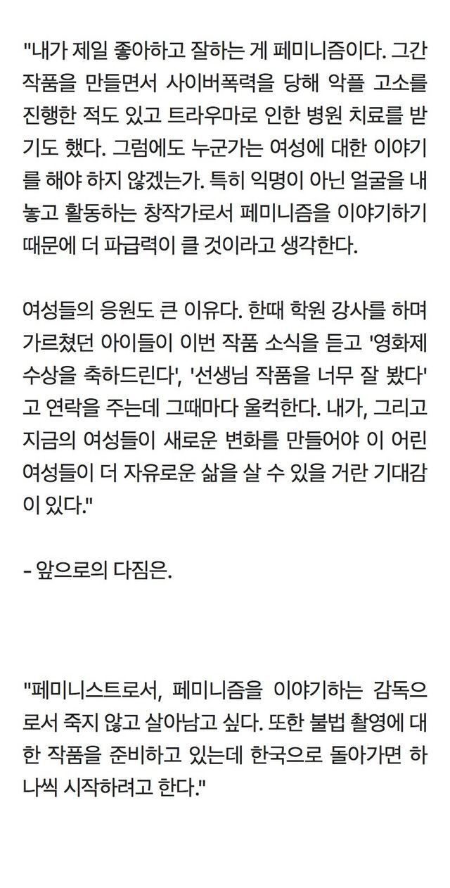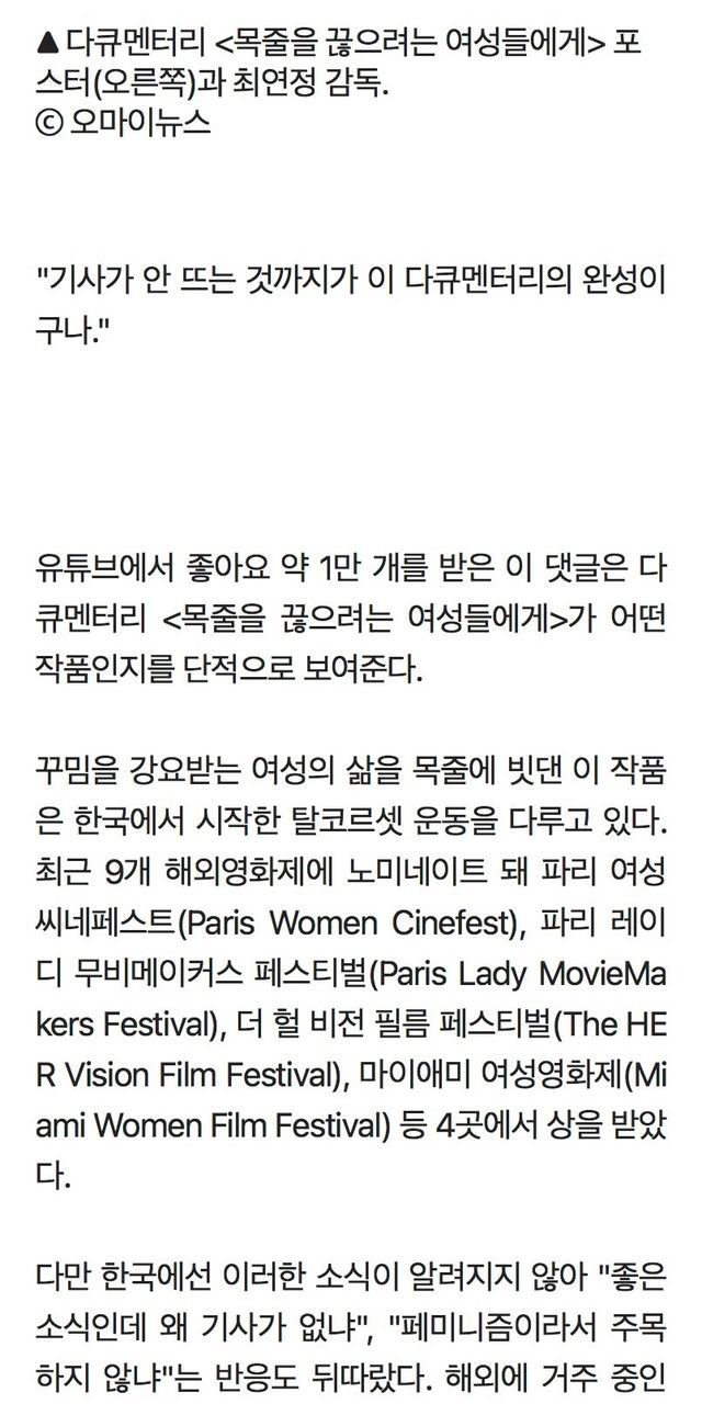 현재 해외영화제 흽쓸고 있는 ‘K- 페미니즘’ 다큐멘터리