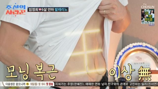 3일 방송된 TV CHOSUN 예능 프로그램 ‘조선의 사랑꾼’에서는 가수 임정희와 발레리노 김희현 부부가 새로운 사랑꾼으로 합류했다.
